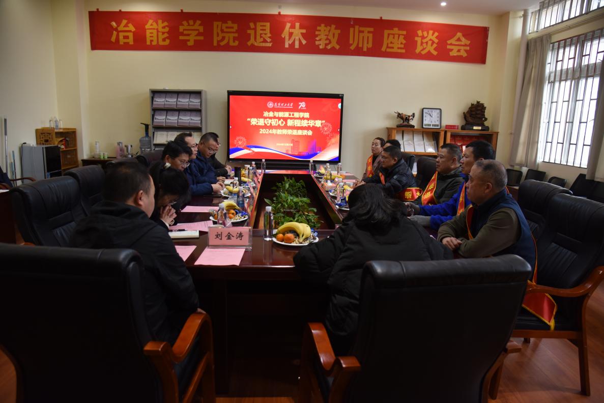 又是一载流光溢彩,又是一季桃李芬芳。2024年12月31日上午,冶能学院在210会议室举行2024年离退休教师荣退活动,学院班子成员、退休教师、学院办公室成员、学院工会委员共计20余人参加了本次活动。会议由院党委副书记于志强同志主持。首先院党委书记徐瑞东同志代表学院发表了热情洋溢的离退赠言,对6位退休教师的辛勤工作表达了真诚的敬意和感谢,徐瑞东书记表达了满怀感动之情,6位退休教师在岗位上以身作则,始终关心关爱学生,做到了鼓励探索、引导学生,表现出爱岗敬业精神,是四有好老师;表达...