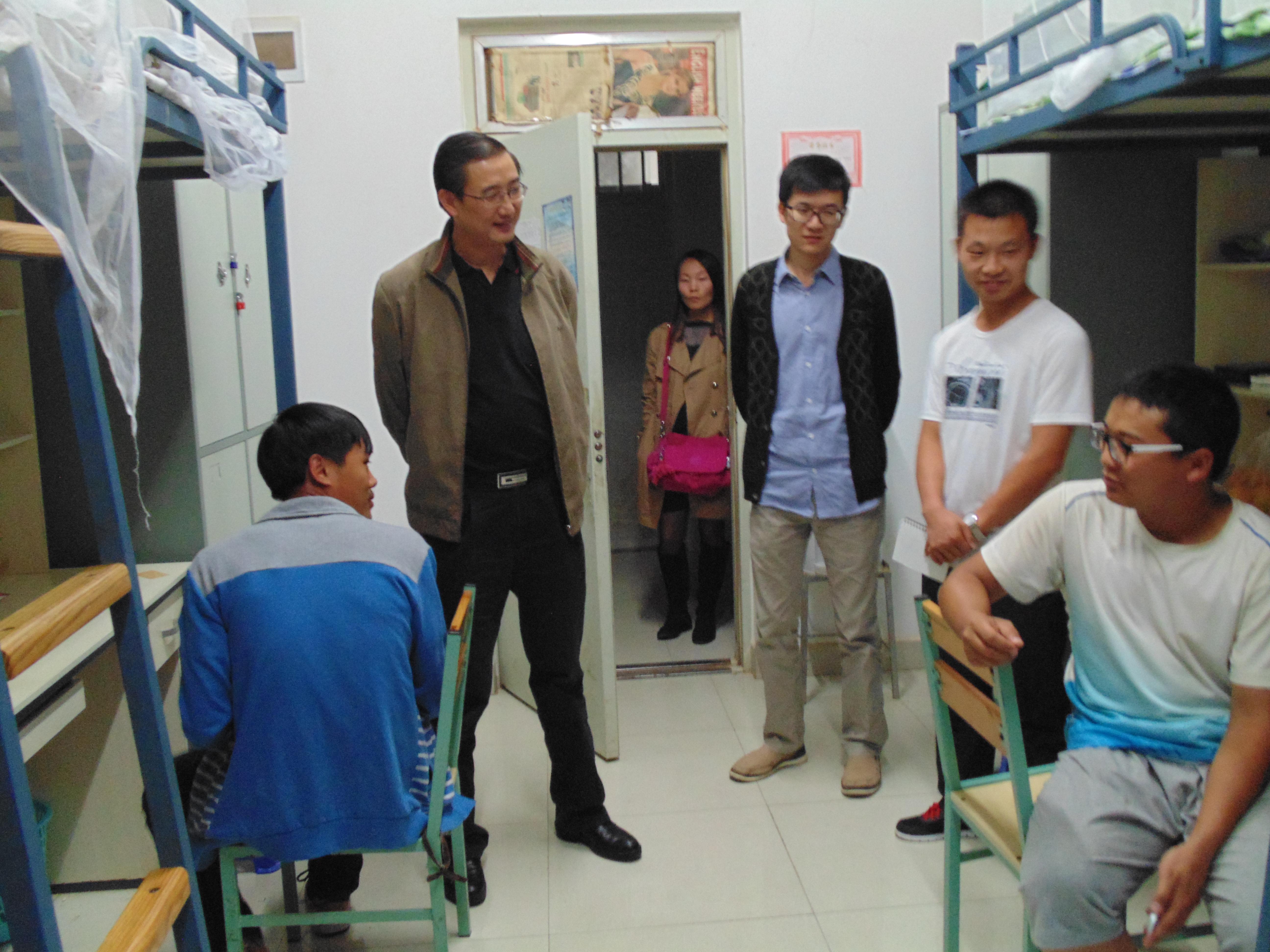 ——冶能学院领导走访学生宿舍2015年9月17日晚,在h动画 党委书记樊刚教授的带领下,学院领导及各科室负责人来到呈贡校区,开展了学生宿舍走访慰问活动。学院党委书记樊刚教授、副书记刘辉老师、何屏副院...