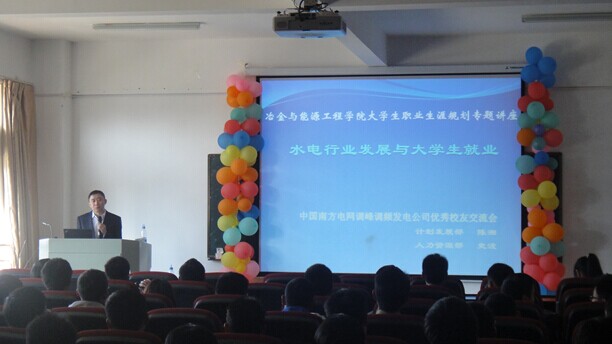2014年11月25日16点,冶能学院在呈贡校区电力楼420教室成功举办大学生职业生涯规划专题讲座——“水电行业发展与大学生就业”。学院邀请到南方电网调峰调频发电公司计划发展部科长、我校水动专业99级校友陈湘作为主讲...