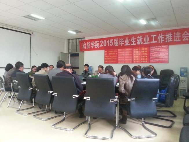 2014年11月6日下午3:00,冶能学院2015届毕业生就业工作推进会在学院二楼会议室召开,学院领导、系主任、各办公室主任、院团委书记、毕业班专业导师及各党支部书记参加了会议。 会议由学院党委副书记刘辉老师主持...
