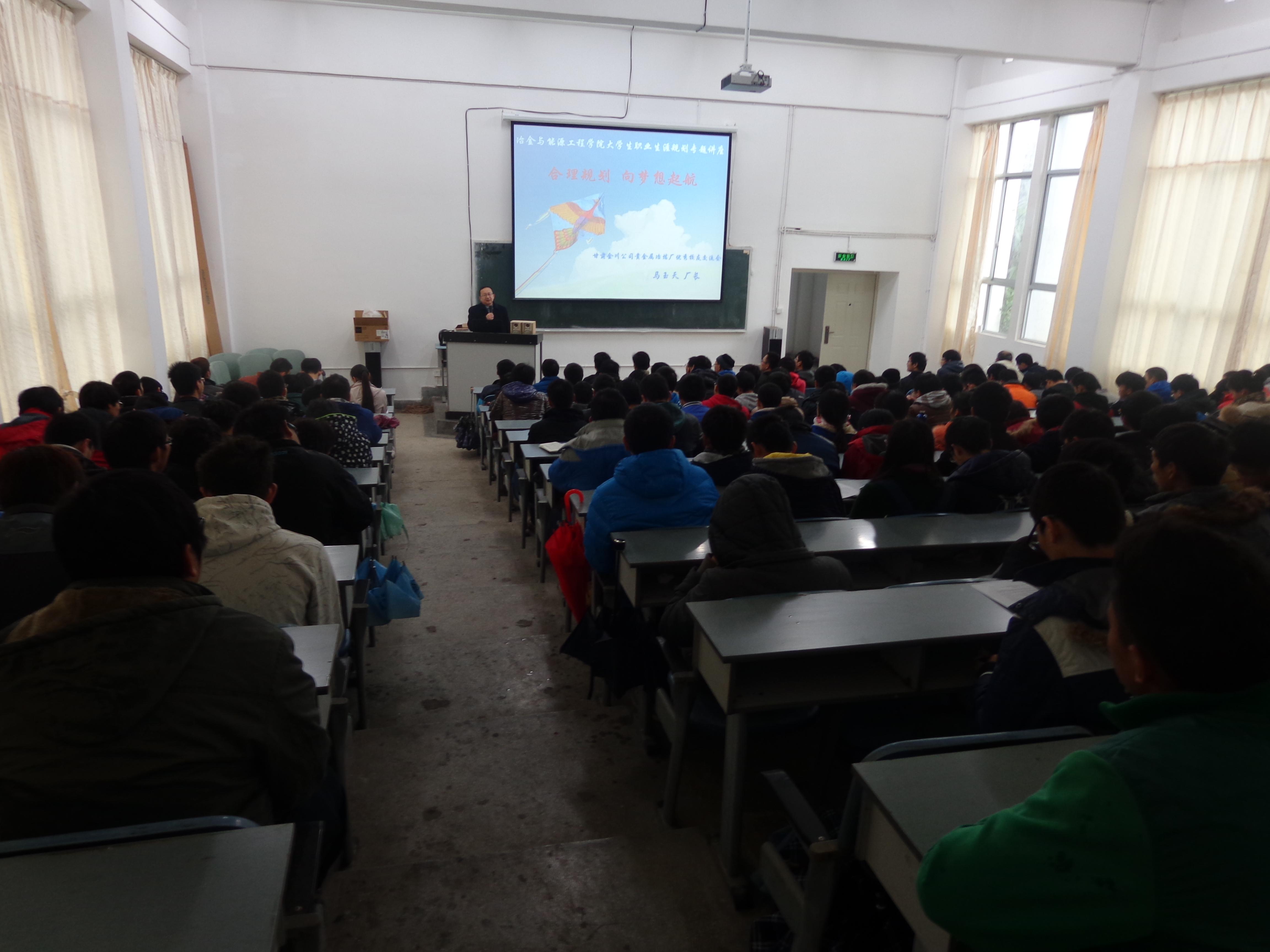 2014年12月18日下午,h动画 在莲华校区基础楼200成功举办优秀校友报告会。本次报告会邀请到我校优秀校友甘肃金川公司贵金属冶炼厂马玉天厂长作为主讲嘉宾。h动画 院长马文会教授,院党委副书...