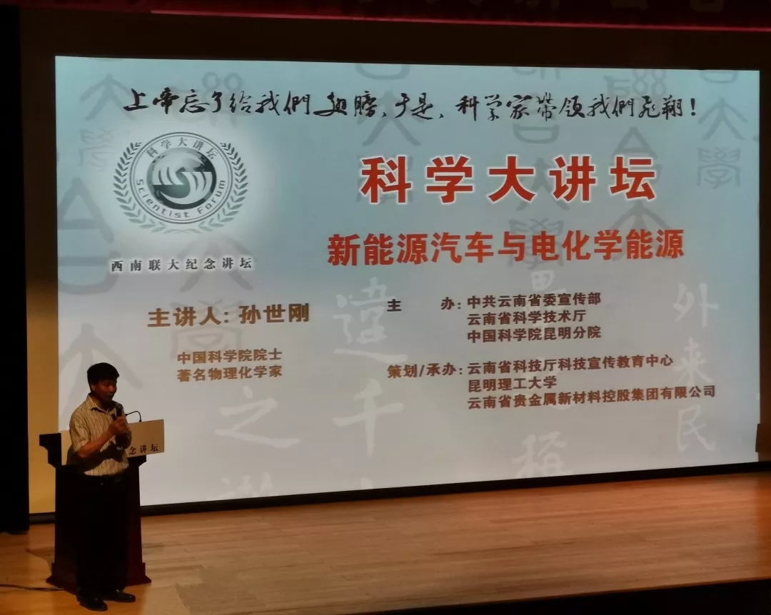 2019年6月26日下午,中国科学院院士、著名物理化学家孙世刚院士做客“科学大讲堂”,在h动画 伍集成会堂做了题为《新能源汽车与电化学能源》的学术报告。本届科技大讲坛由中共云南省委宣传部、云南省科学技术厅...