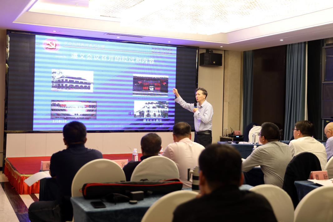 遵义市委党校原教育长韦生彬教授在专题党课中深入讲解了遵义会议召开的历史背景,深刻阐释了遵义会议精神和历史启示。