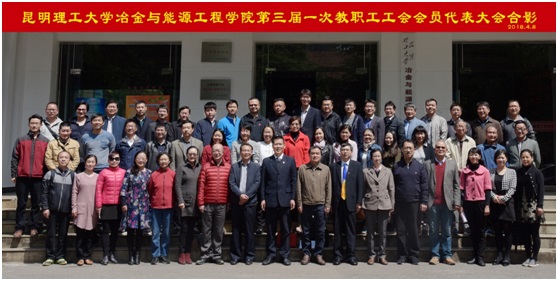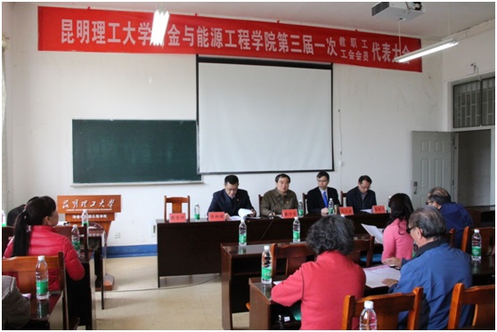 第三届一次教职工暨工会会员代表大会在冶能楼407教室隆重召开。出席会议的有学校工会领导、学院领导、第三届一次双代会正式代表、特邀代表及列席代表(退休老教师何蔼平教授、杨慧振教授、普靖中副教授)等共计57人。会议由院党委陈杨健书记主持。首先向代表们通报本次会议新一届正式代表选举情况:经各系部推荐共选举出新一届双代会代表53人。代表们举手表决通过了会议议程、主席团名单。