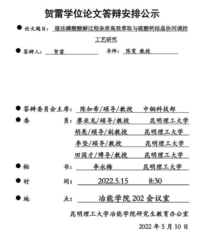 上一条:冶能学院硕士学位论文答辩安排公示——嵇广雄、葛伟童——2022-05-15