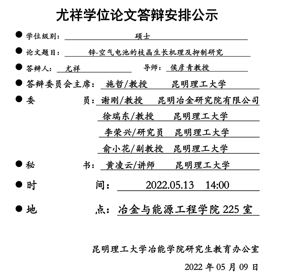 上一条:冶能学院硕士学位论文答辩安排公示-杨青宏-2022-05-13