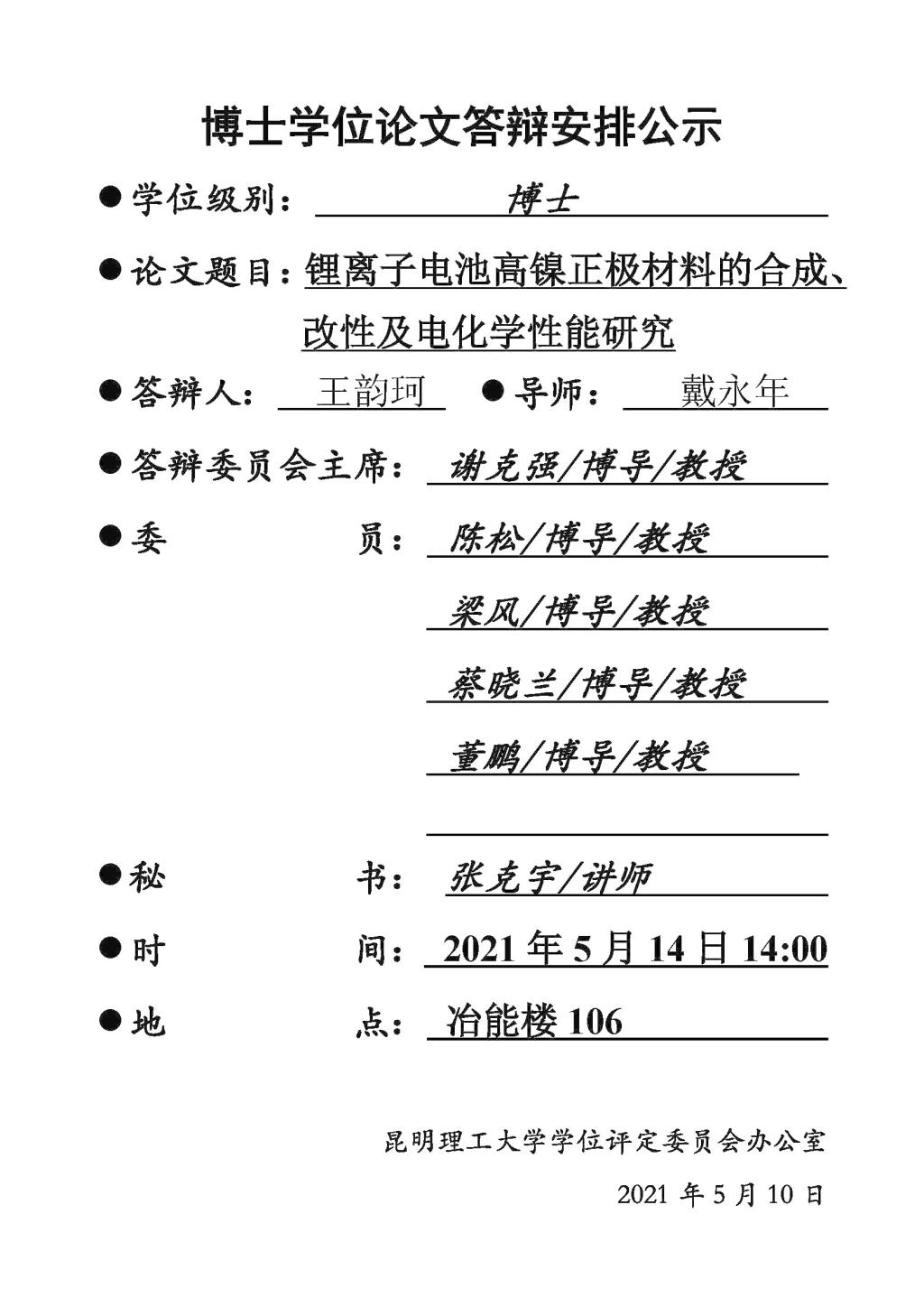 上一条:冶能学院硕士学位论文公开答辩安排公示——屈高丞、冷彦宜、陈靖、李佳蔚2021.5.12