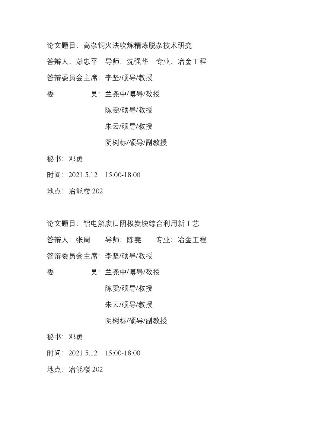 下一条:冶能学院硕士研究生答辩公示--张诗明,吴家瑛,周涛,樊飞虎,汪雨慧2021.05.13