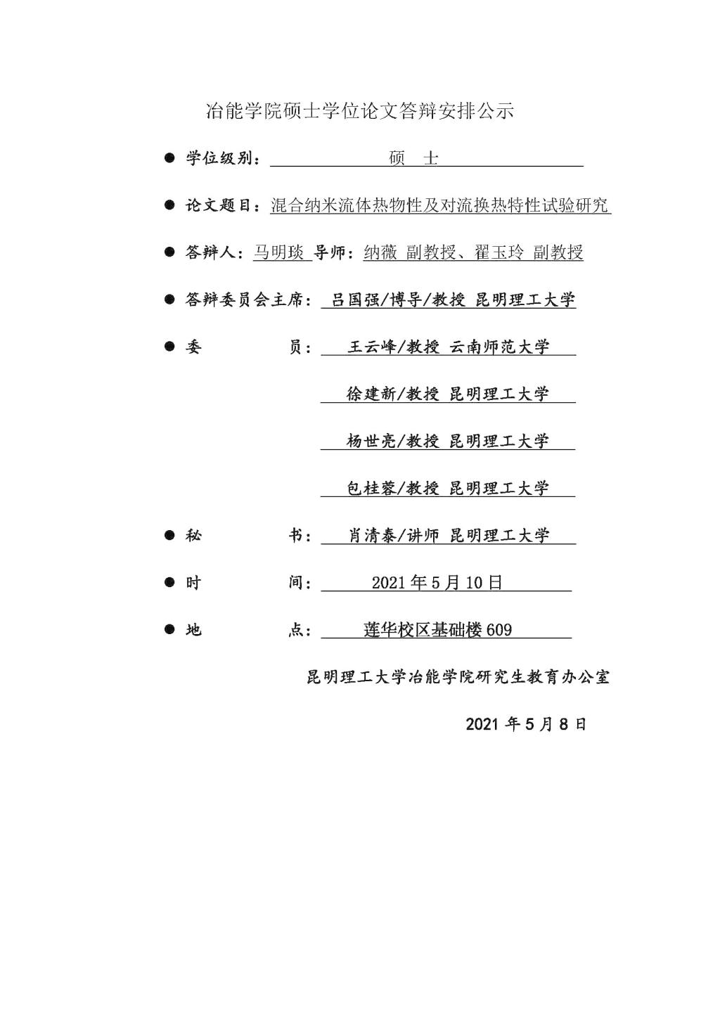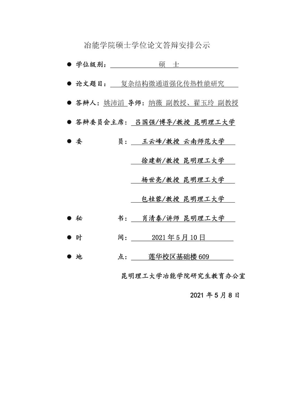 下一条:冶能学院硕士研究生答辩公示--李家辉,张峰,翟蔚然,刘国豪2021.05.08