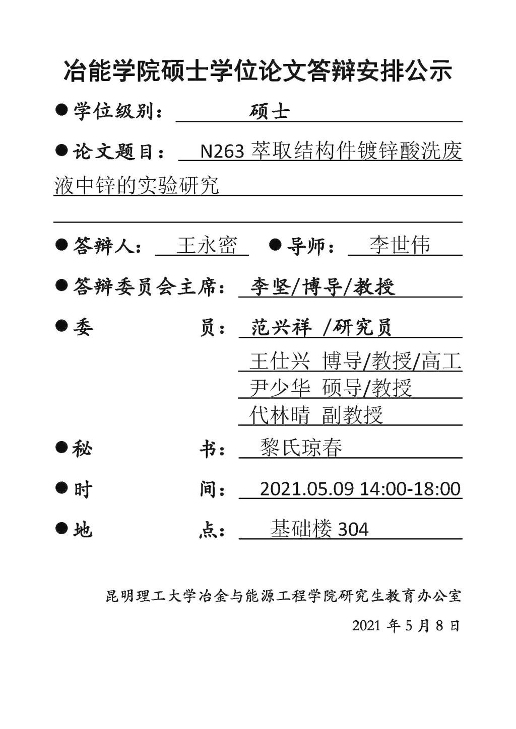 冶能学院硕士学位论文公开答辩安排公示--王永密2021.05.09