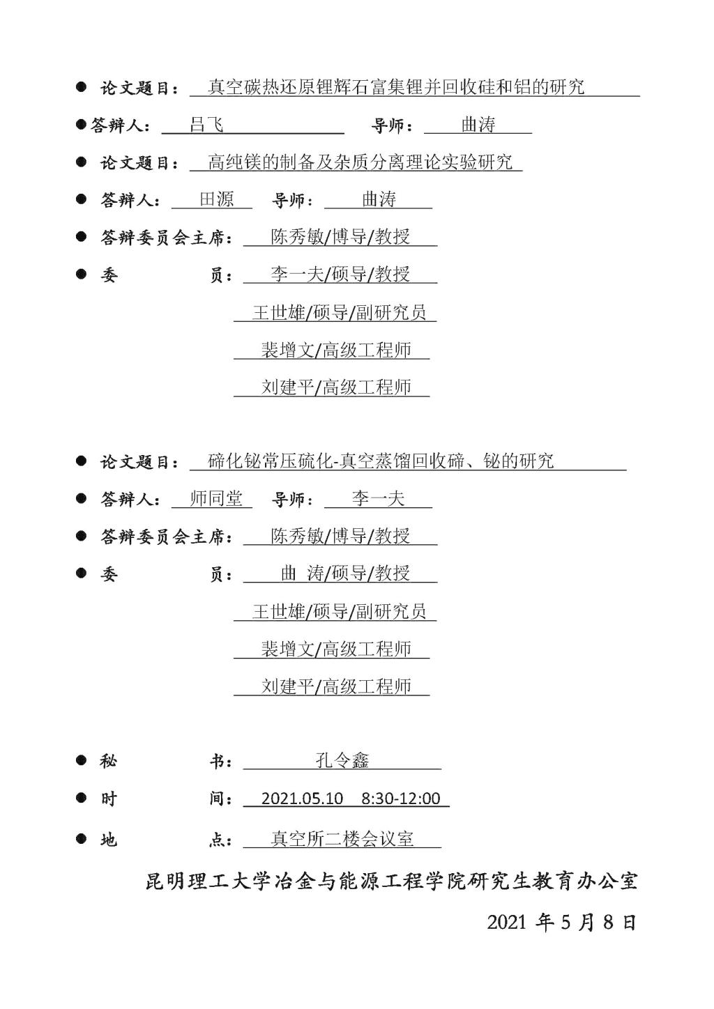 下一条:冶能学院硕士学位论文公开答辩安排公示--世仙果,江国豪,朱应旭,孙朴,杨源,雷佛光2021.5.6