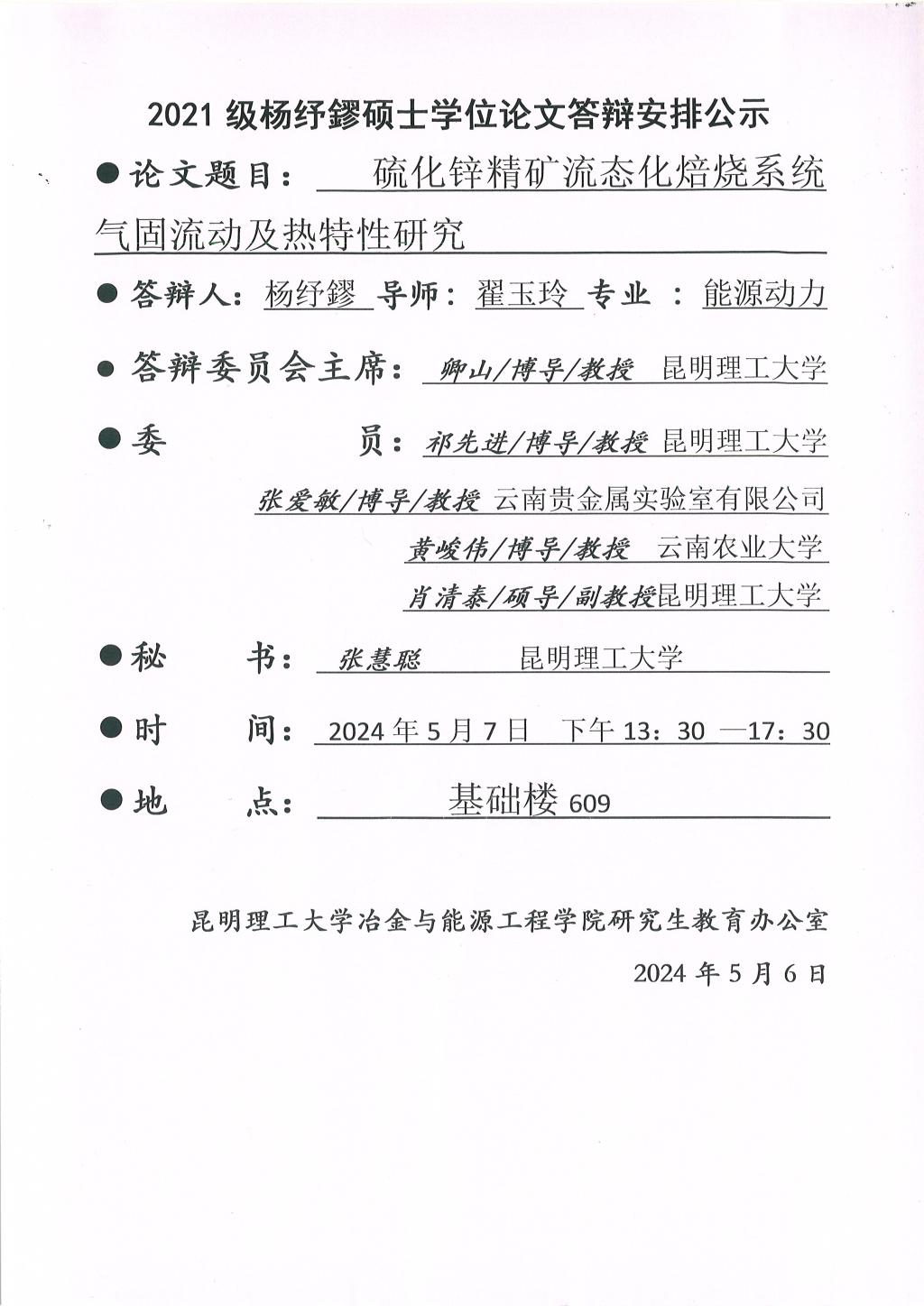 下一条:2024年硕士论文答辩公示——蔡维松,黄庆兰,王利强2024.5.8