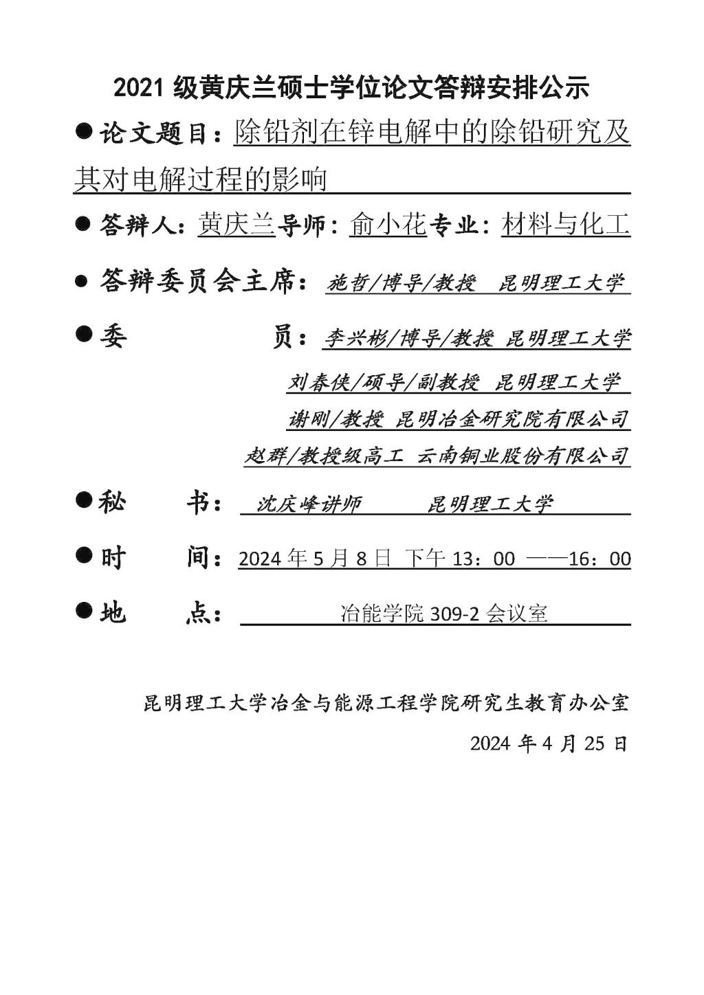 下一条:2024年硕士论文答辩公示——李倡纹,刘强,顾智辉2024.5.2