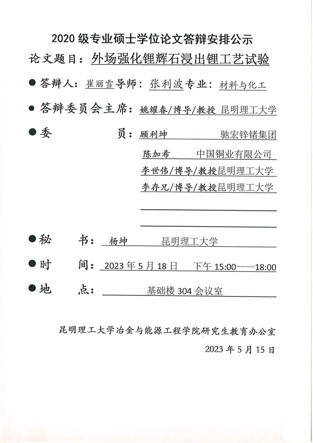 下一条:硕士学位论文答辩公示——吴旭东,吴京远,李文杰,廖亚楠,陈文哲,汤君瑞,申鑫,王江涛,周星,王恒,闫桂枝,史佳豪——2023.05.17