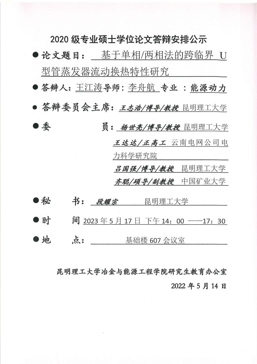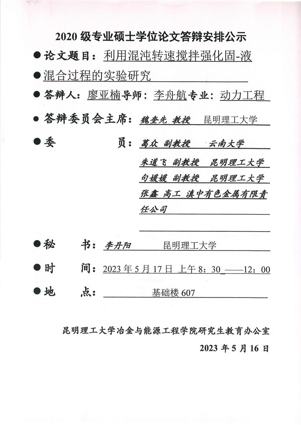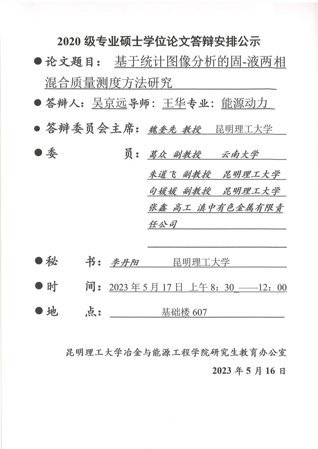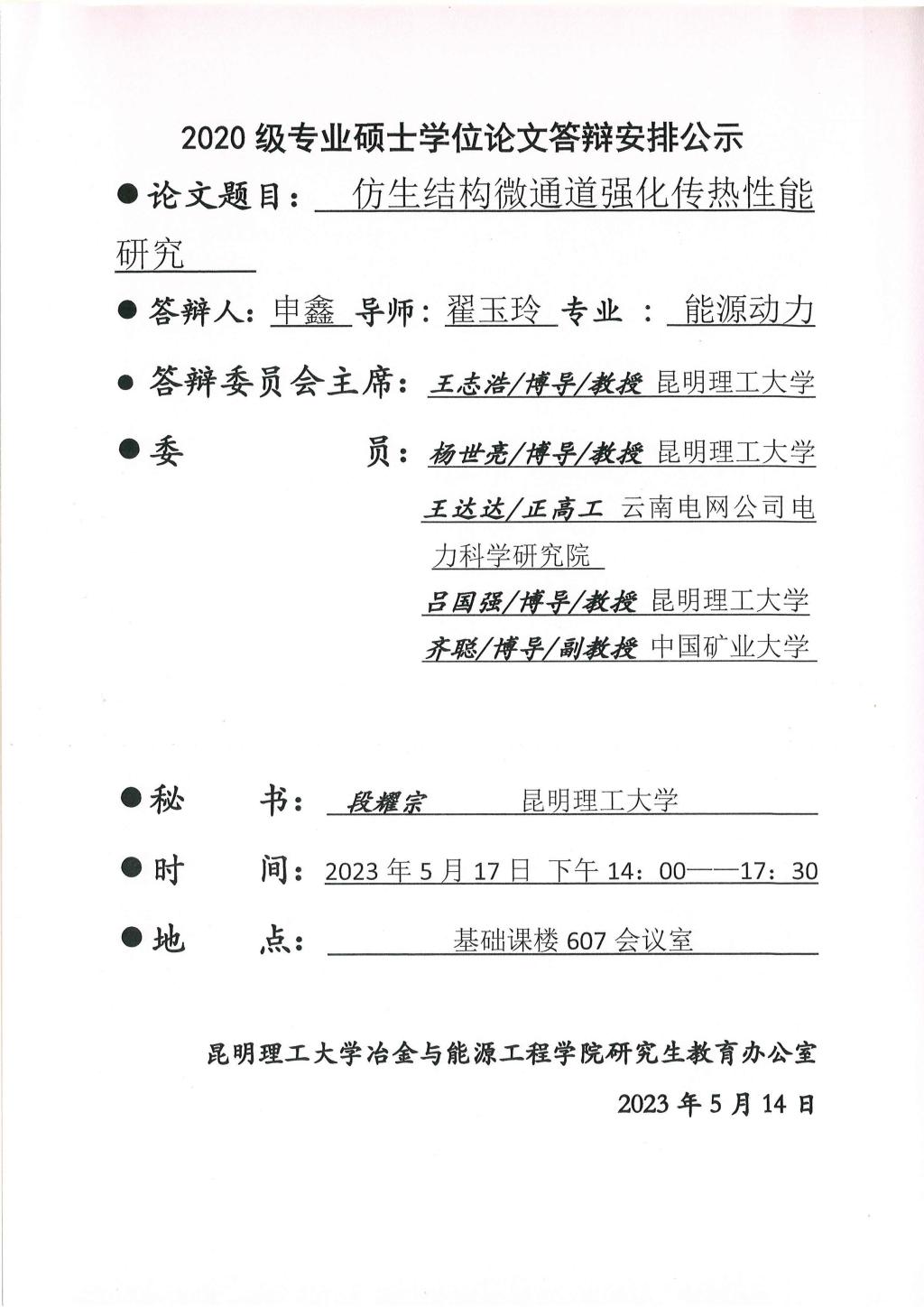 硕士学位论文答辩公示——吴旭东,吴京远,李文杰,廖亚楠,陈文哲,汤君瑞,申鑫,王江涛,周星,王恒,闫桂枝,史佳豪——2023.05.17