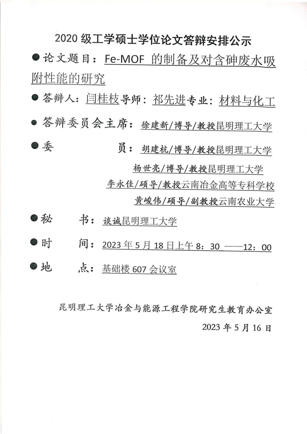 硕士学位论文答辩公示——崔丽雪,王天——2023.05.18