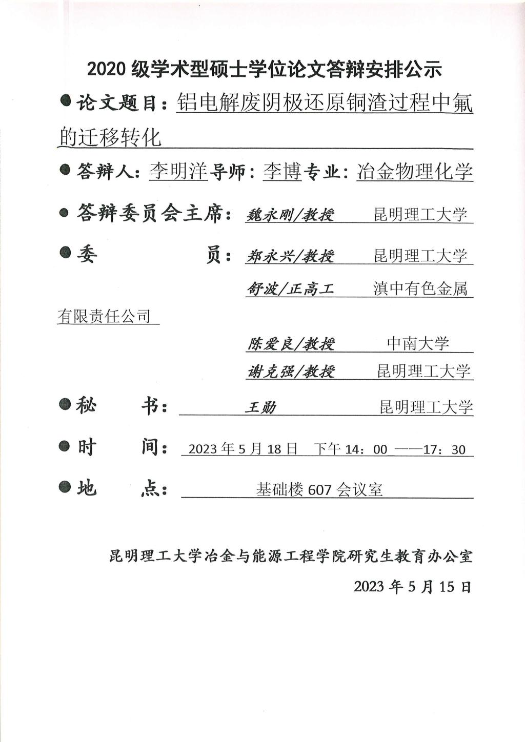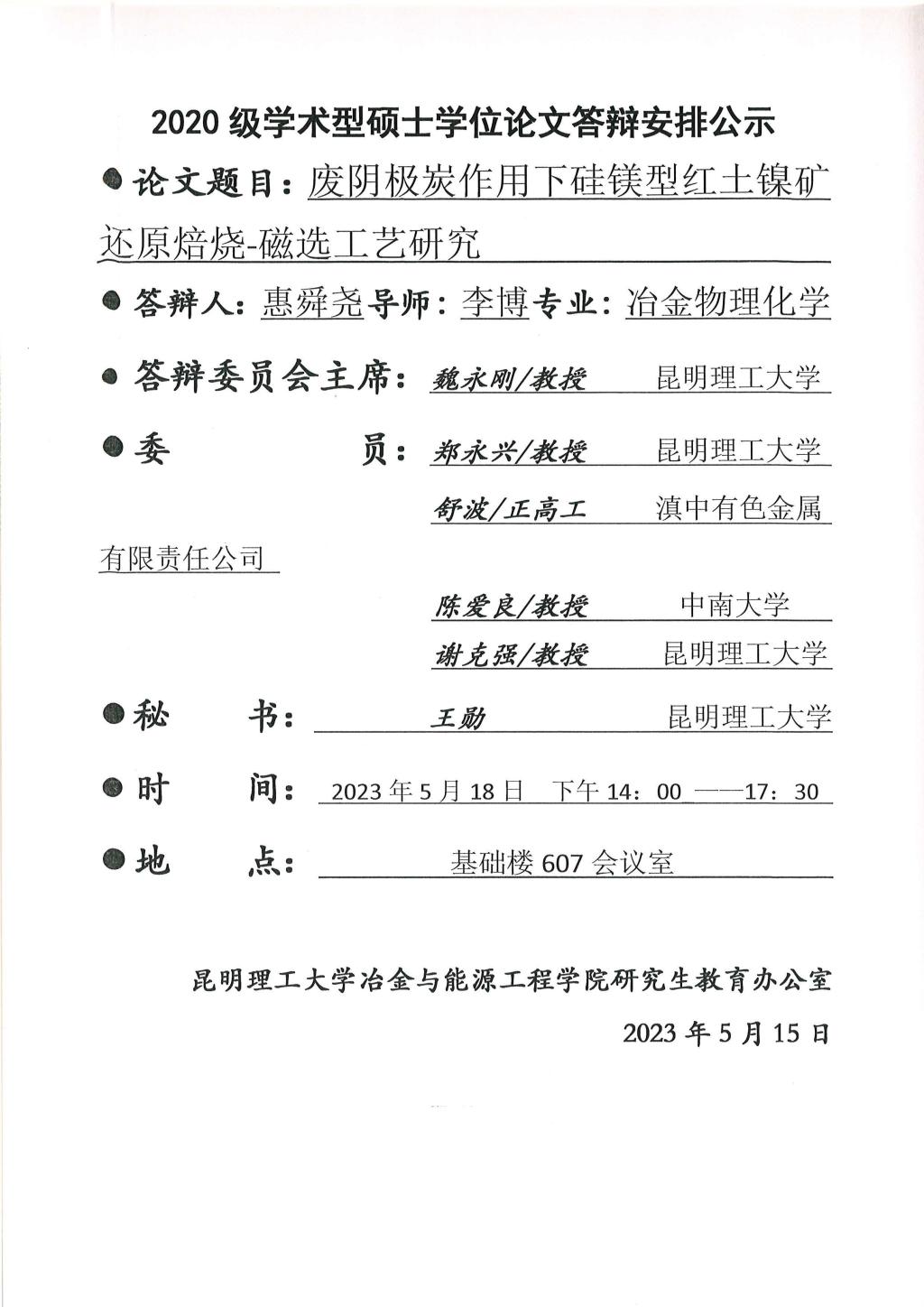 硕士学位论文答辩公示——孙赫,王仁毅,杜勃雨——2023.05.17