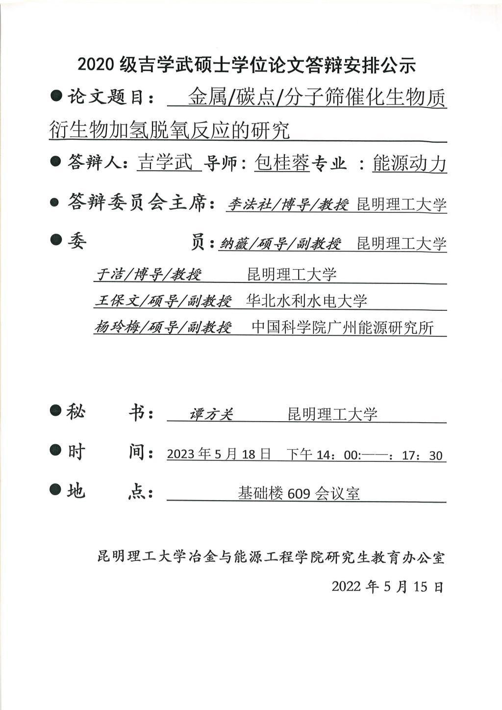硕士学位论文答辩公示——陈德权,吉学武,贾文磊,冯智,惠舜尧,刘金月,李明洋——2023.05.18