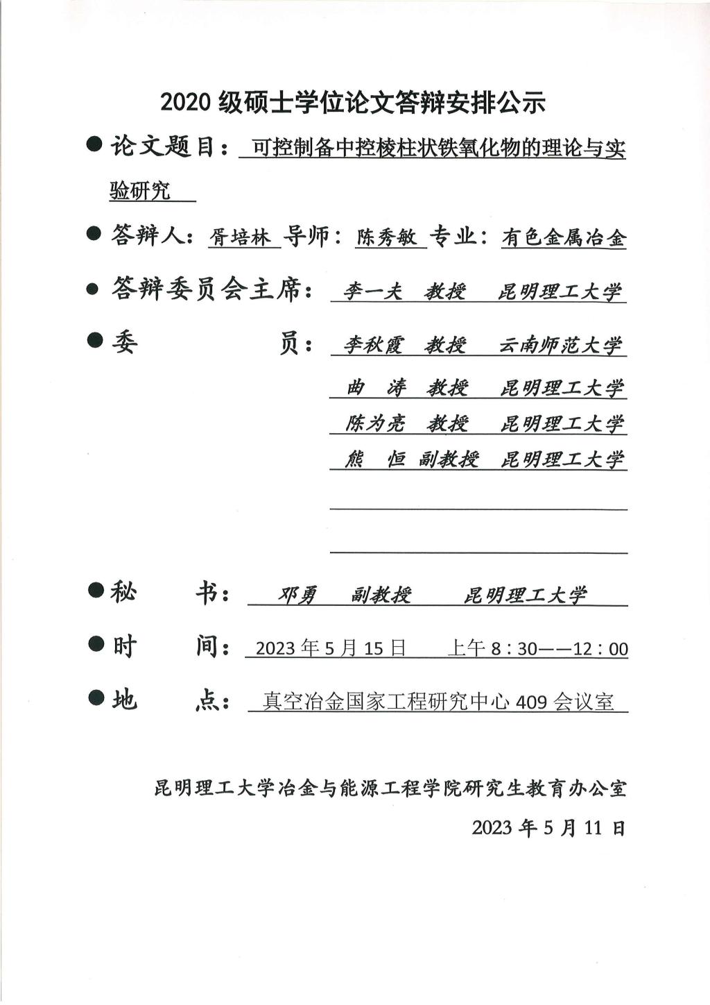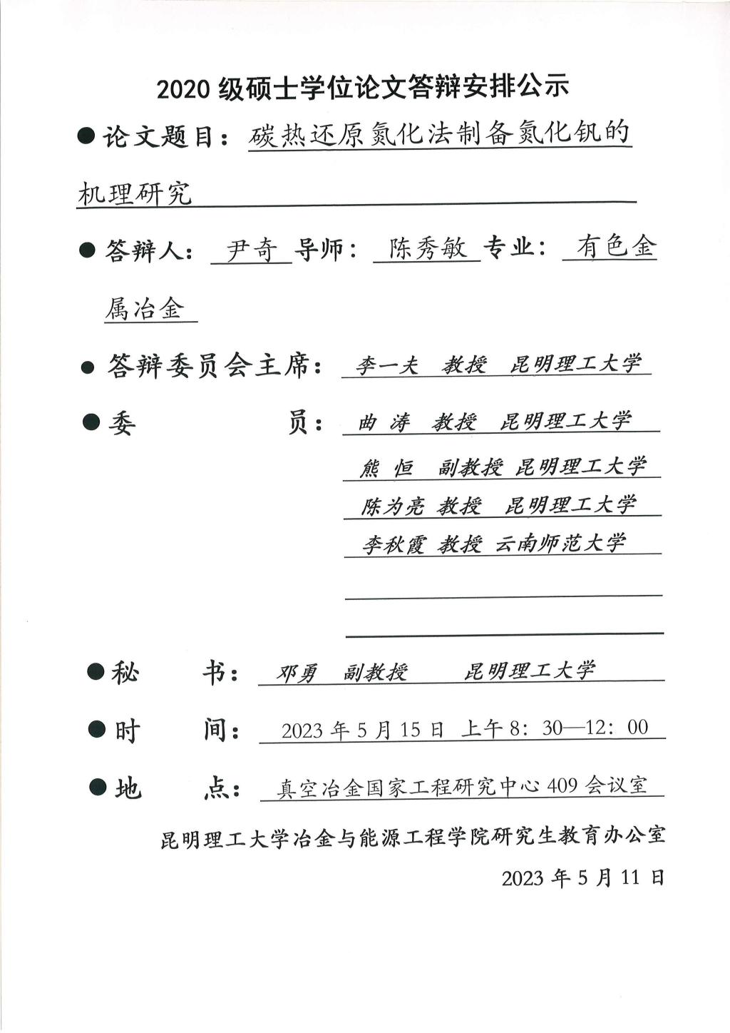 下一条:冶能学院硕士学位论文答辩公示——王鹏,牛文辉,姚正银,赵振刚,宋廷玉——2023.05.13
