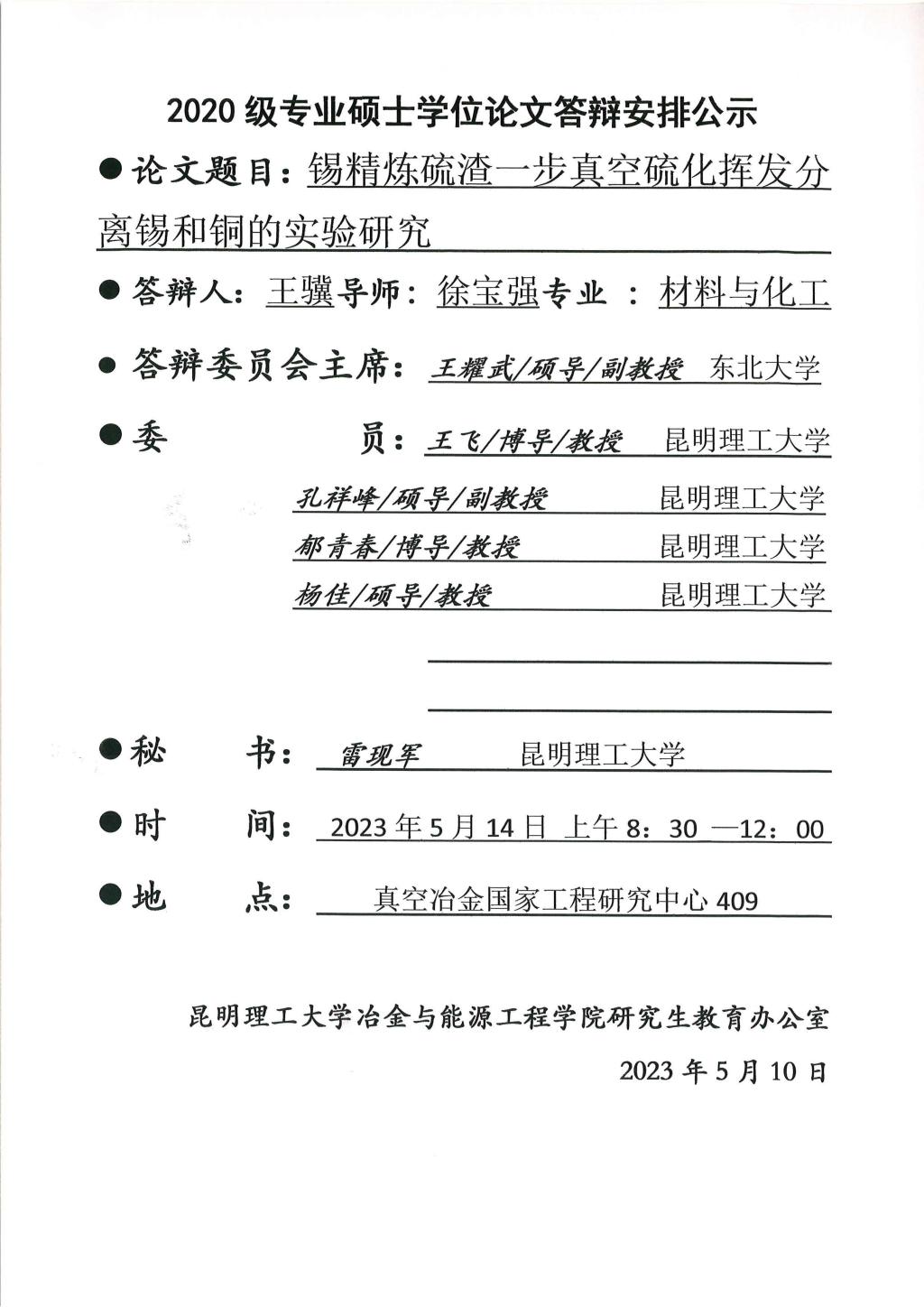 下一条:冶能学院硕士学位论文答辩公示——李祥,李友涛,谢世豪,杨涛,邓育林,闫萍鑫,李俊,曹飞,李立胜——2023.5.13