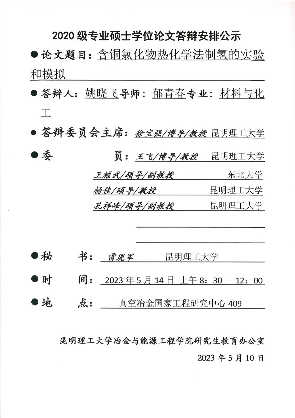上一条:冶能学院硕士学位论文答辩公示——王鹏,牛文辉,姚正银,赵振刚,宋廷玉——2023.05.13