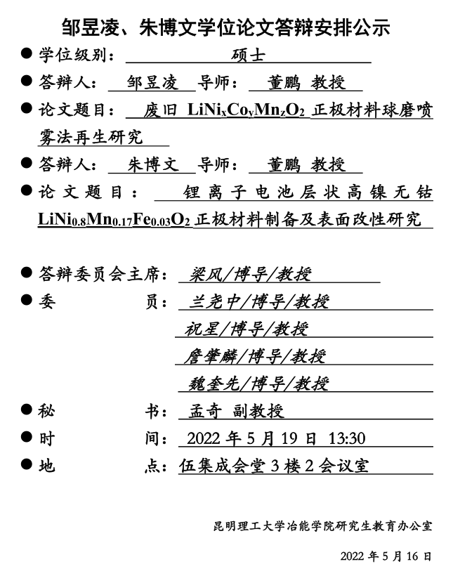 上一条:冶能学院硕士学位论文答辩安排公示——王妍洁、郝森然、刘卓——2022-05-19