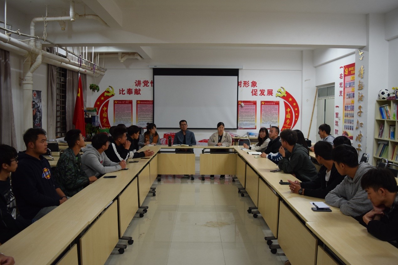 在呈贡校区憬园1幢1138活动室开展”不忘初心,牢记使命“主题教育座谈会。出席座谈会的有冶能学院党委书记陈杨健,党委副书记令狐欢欢,辅导员李飞霏老师、起晨老师、陈俊杰老师和18级19级的班委和学生代表。