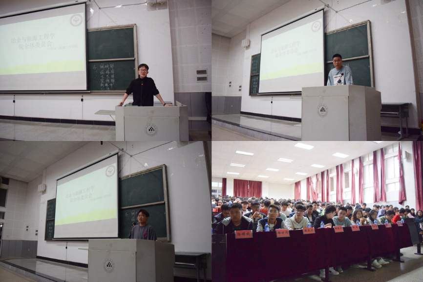 2019-2020学年第一次全体委员会”活动。本次活动由办公室承办,出席本次活动的有团委书记助理杨峻同学,学生会副主席胡乾宇同学以及主席团其余六位同学,参加活动的有冶能学院各部门部长、副部长及各部委。