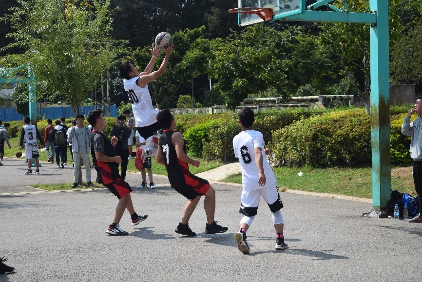 本次比赛针对冶能学院呈贡校区大一大二全体学生,以班级为单位,每班组织一支篮球队参赛,采用标准赛制。各班在进行了两周的角逐后,迎来了决赛。当天首先开始的是能科191与冶金181的季军争夺战,比赛一开始,双方就展开了激烈角逐,队员们精神抖擞的摆开姿势,开始激烈的抢球,断球,防守,进攻模式。场外的拉拉队也情绪饱满的为运动员们加油打气。下半场比赛进入白热化阶段,两支队伍都咬紧牙关,尽力抓住机会,一轮轮地投球。观众亦激情四射,拉拉队喊得气势磅礴。最终冶金181夺得了季军。