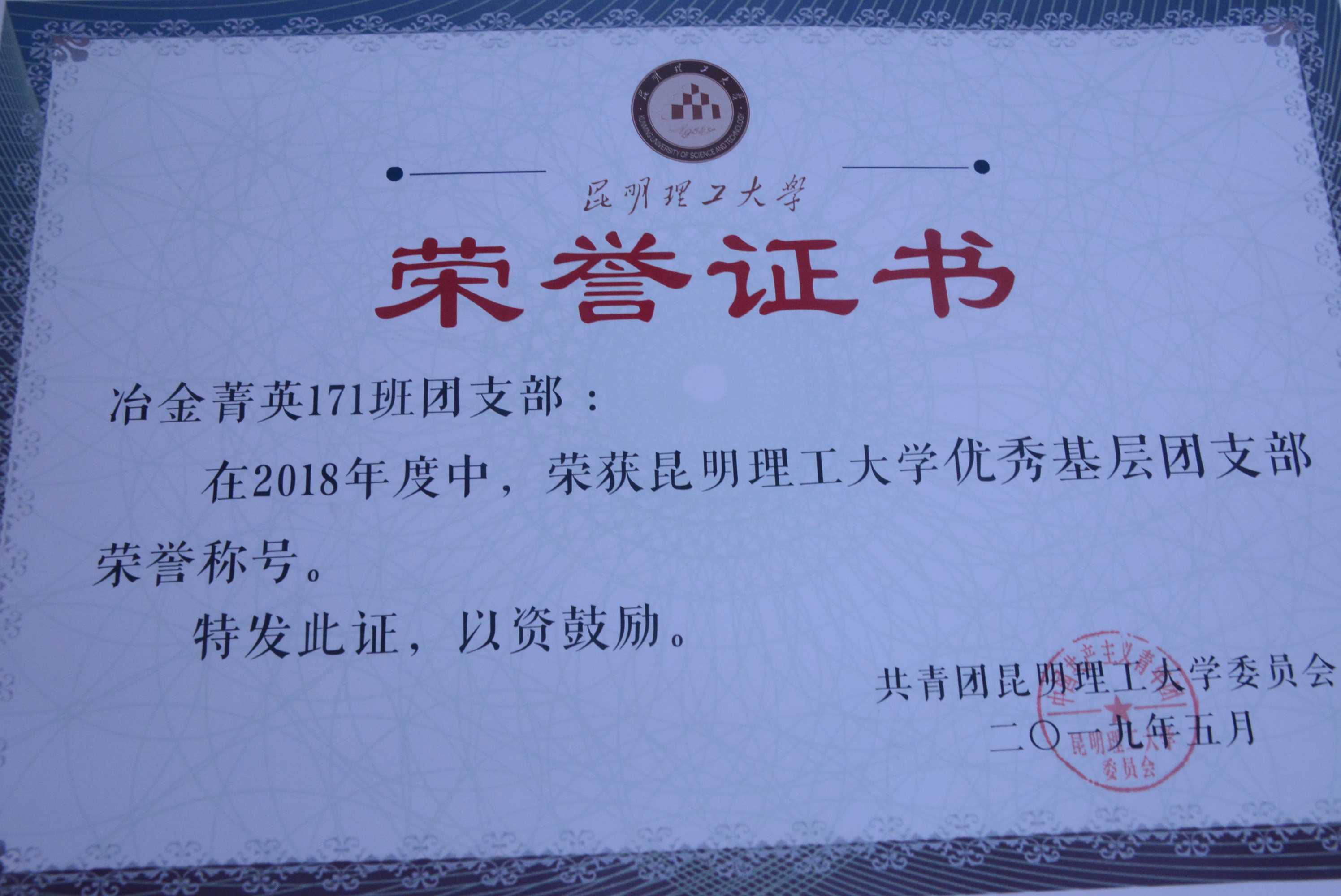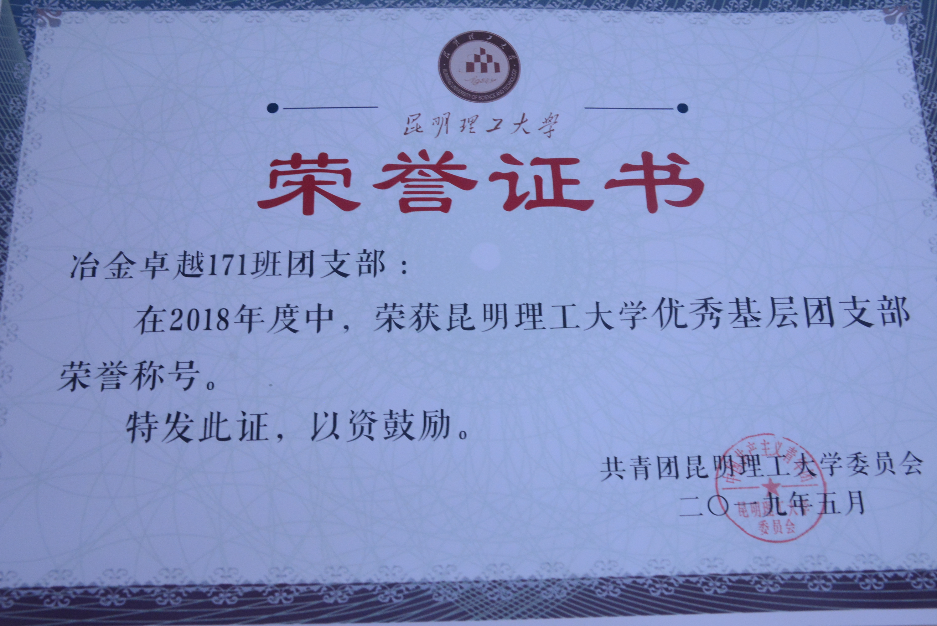 冶金菁英171班团支部荣获“优秀基层团支部”