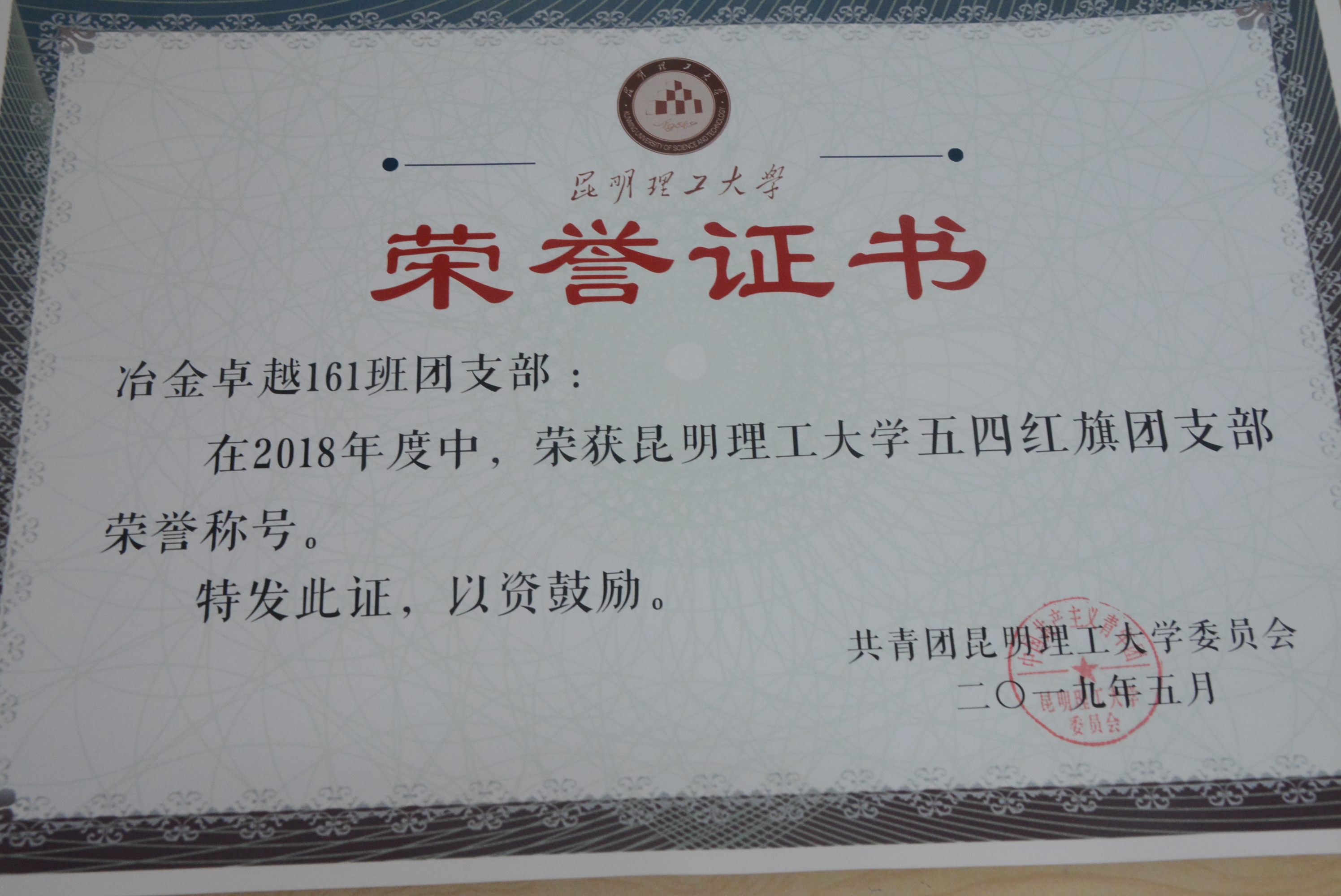 冶金卓越161班团支部荣获“五四红旗团支部”