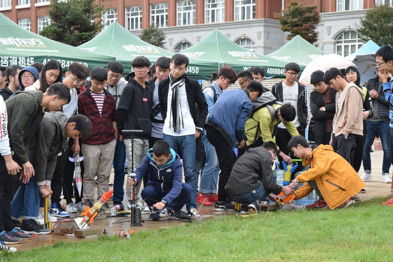 科技协会承办的第二届“助力天宫大赛”水火箭大赛在公教楼前顺利开展。担任此次大赛的评委有水火箭比赛赞助商一乘驾校冶卓131郑会灿学长,冶能学院团委秘书长杨峻同学,冶能学院学生会主席团助理胡乾宇同学,冶能学院红魂青年社社长戴晶惠同学,h动画
