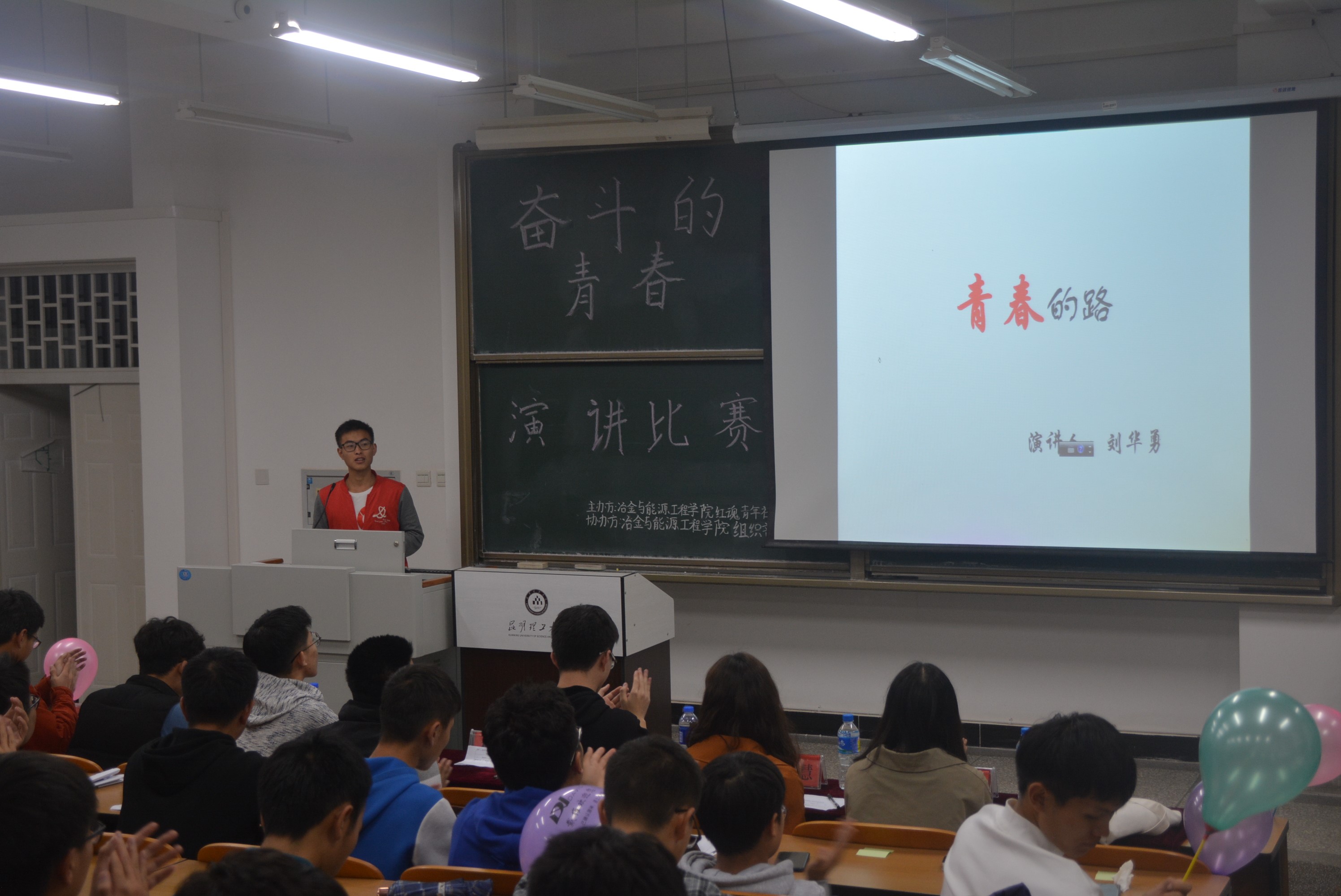 委员会主办,冶能学院红魂青年社承办,冶能学院组织部协办的“奋斗的青春”主题演讲比赛成功展开。出席的嘉宾有冶能学院团委秘书长杨峻同学,学生会主席团助理胡乾宇同学,冶能学院红魂青年社社长戴晶慧同学,校社团联合会调研部黄麟翔同学,冶能学院团委组织部部长王灏宇同学,冶能学院调研部部长赵向渝同学,冶能学院编辑部副部长陈英博同学。