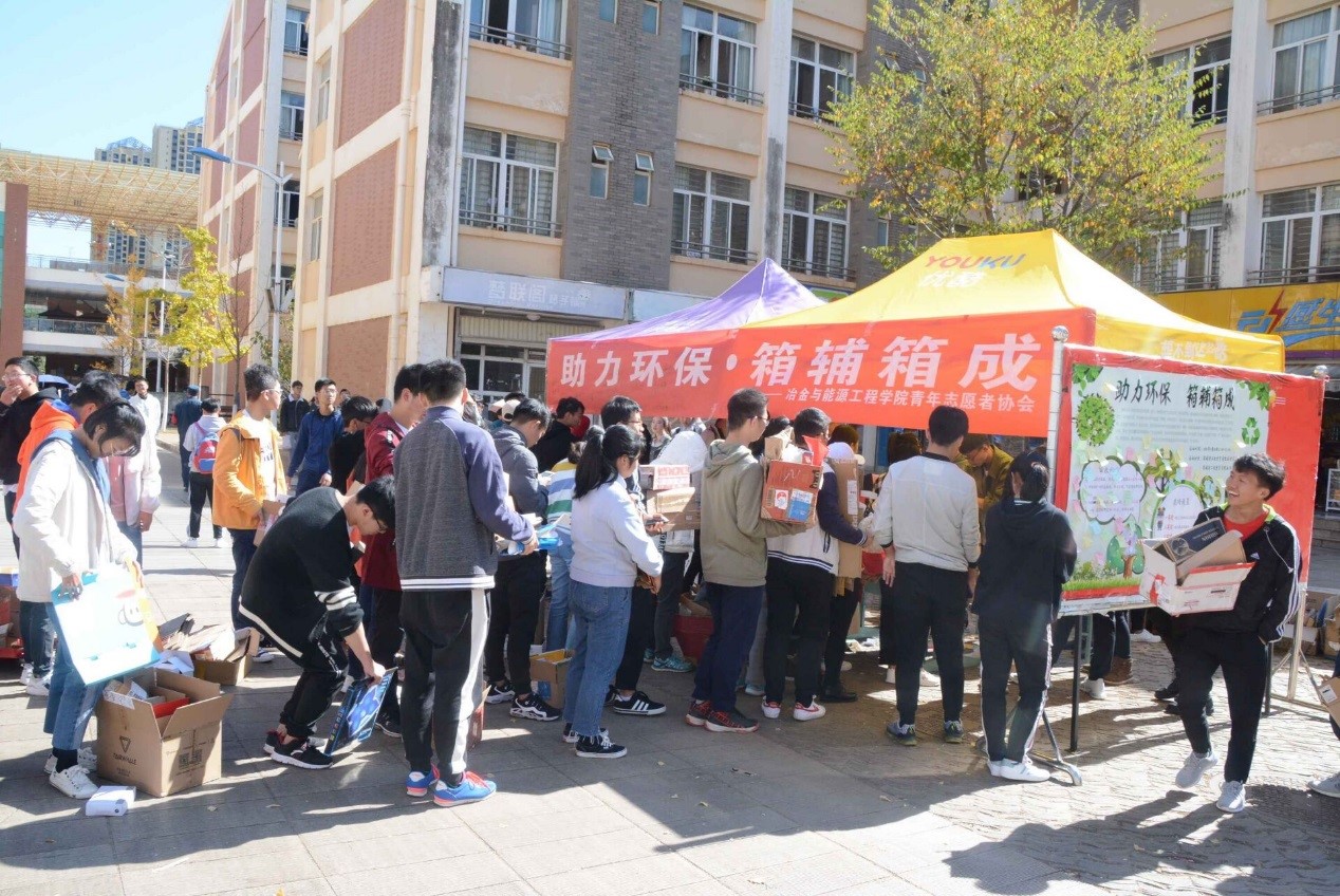 本次活动方式新颖,寓意深远。活动承办方冶能学院青年志愿者协会在憬园和怡园摆摊设点回收废纸箱,同学们把废旧纸箱拿到指定地点进行回收,然后参与小游戏,在宣传横幅上签名并参与抽奖。奖项设有一、二、三等奖及幸运奖共十六名,获奖者可得精美礼品一份。本次活动得到了同学们的积极响应,在帐篷前排出长长的队伍,以至于在短时间内收到的废纸箱就达到了主办方预期。本次活动的圆满结束体现出了昆工学子的良好的环保意识。在活动结束后,青协的工作人员们在活动帐篷前合影留念。