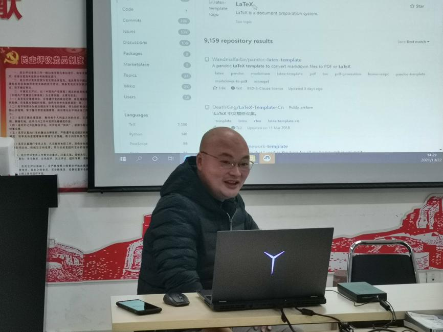 在憬园1138活动室开展“子约开展”系列讲座,本期讲座邀请漆鑫老师作为主讲嘉宾,主题为《开源才是未来——用Latex优雅地代替word和powerpoint》。讲座旨在帮助同学了解Latex的相关知识,通晓Latex的功能、优势以及其在工作学习中的重要作用,激发同学们对Latex的学习兴趣。