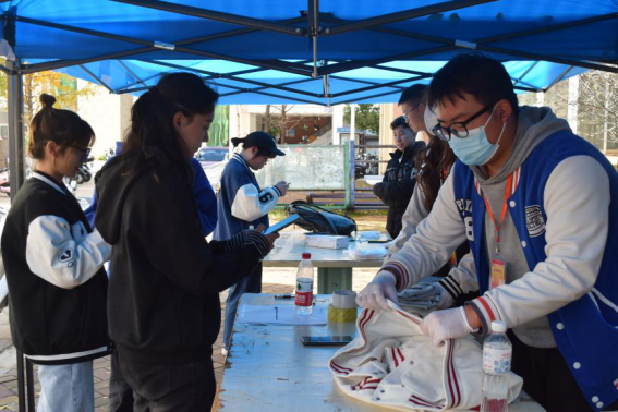 活动期间,参与捐赠的同学积极响应,有序排队,将自己提前清洗干净的闲置衣物带到现场,由工作人员进行检查、消毒、整理并打包。现场共收到了500余名同学捐赠的衣物,这些爱心衣物将在不久的后经快车送至贫困山区的孩子手中,为他(她)们的冬天增添些许温暖。