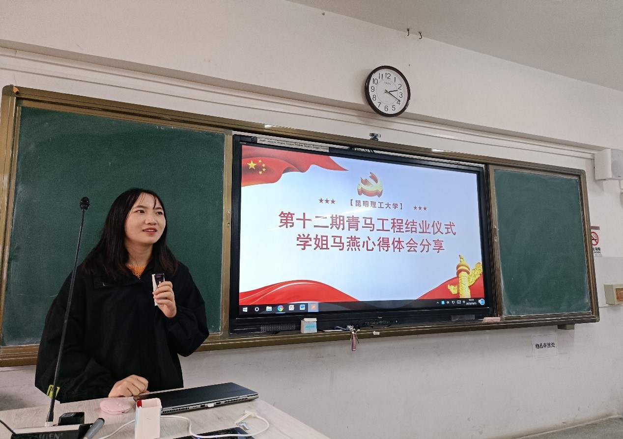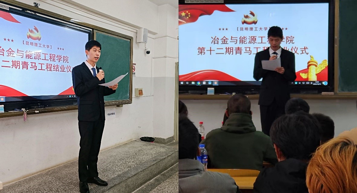 活动第二阶段,优秀青马工程学院司超朋、马燕进行分享。身处理工,学于冶能,我们肩负着“科技报国”的历史重任,做好知识储备的同时,合理规划人生道路,正确把握人生方向,也是青年大学生成长的必经之路。首先马燕学姐向大家讲述了她认真务实、勤学肯干的学习态度,以及如何在不断地努力下,最终保研到了中南大学的经历;司超朋学长则是讲述了如何平衡工作与学习两者之间的关系以及如何根据个人情况抉择未来将面临的升学与工作问题。相信学员们在学长学姐的倾囊相授中对自身的发展有了更加清晰的规划。