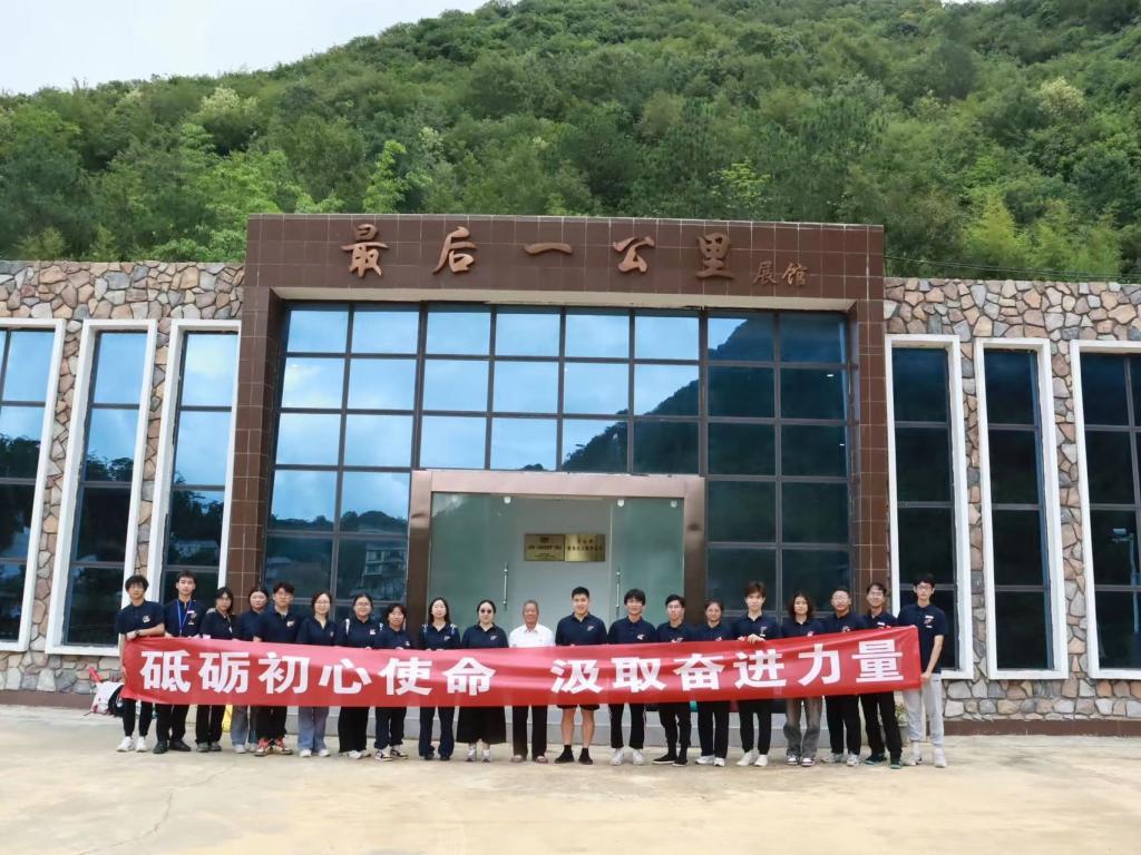 第一站,实践团队前往岩头村,在岩头村最后一公里精神纪念馆,岩头村村长、全国脱贫攻坚先进个人李华明用真挚淳朴的话语讲述了带领15户人家苦干10余年,硬生生在悬崖上打通脱贫致富“最后一公里”的故事。路通后,村里人不再抬猪下山,而是引进企业养猪,村民入股分红。当下,李华明依然守在村里,正忙着带领群众搞生猪代养、筹办农家乐、开展村容村貌建设,迈入乡村振兴新征程。队员们感触颇深。学习结束后,纷纷与村长合影留念。