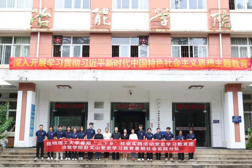 2023年暑期“三下乡”社会实践活动出征仪式在莲华校区冶能楼前举行。学院党委书记徐瑞东、党委副书记令狐欢欢、学工办主任杜威、带队教师崔庆宇、孙景茹赴文山党史学习教育社会实践团队全体成员参加本次活动。