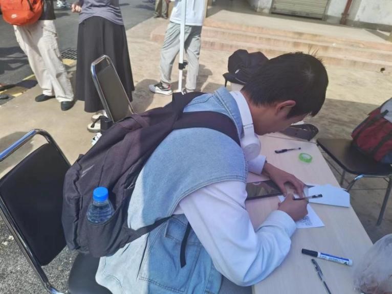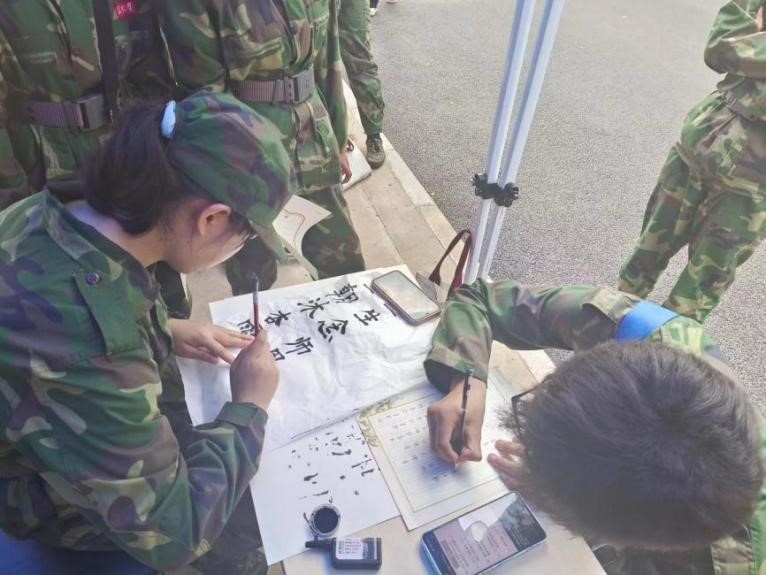 活动二是“笔端生芳华,润物谢师恩”。同学们或使用硬笔、软笔或毛笔进行书法创作,或携带老师肖像画或师生日常照片到现场交给工作人员,以图片形式记录感恩点滴,亦或是写下金句,表达感谢。