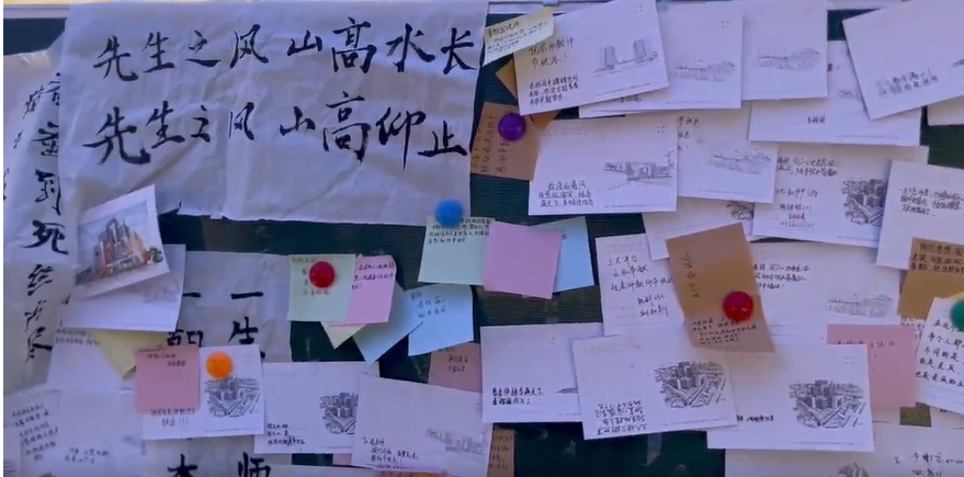 活动三是“师恩似海,恩师怀恩”,同学们在明信片上写下对老师的祝福,并将明信片交由工作人员粘贴展示,随后结合自身学习经历,在展板上写下感恩教师的词句。
