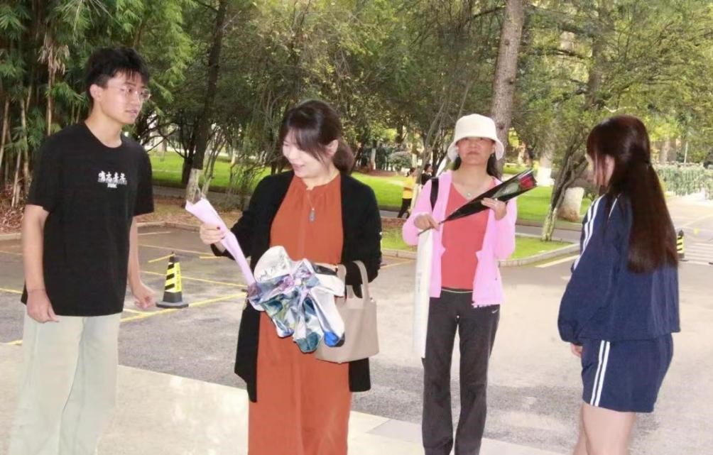 活动共包含四个内容,首先是“岁月如歌,感念师恩”部分,同学们在冶能楼前向老师献花,对老师的感激之情溢于言表。