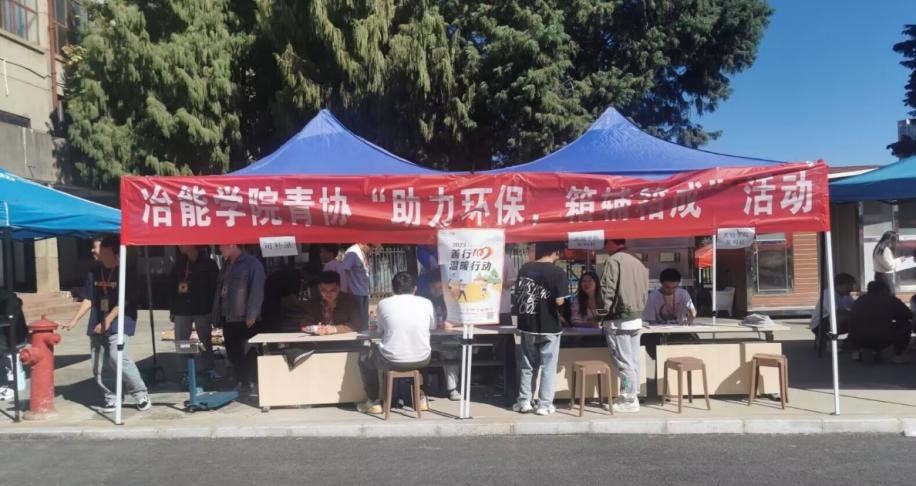 青年志愿者协会在莲华校区羽毛球馆旁空地举办“助力环保,箱辅箱成”主题志愿服务活动。