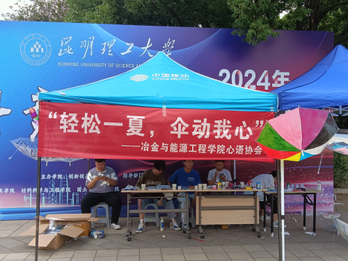 心语协会在莲华校区博信广场举办“轻松一‘夏’,伞动我心”主题心理活动。本次活动面向冶能学院全体本科生,共计200人参与。