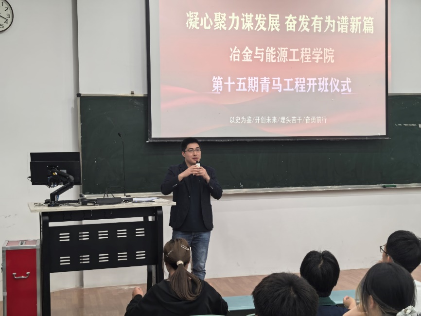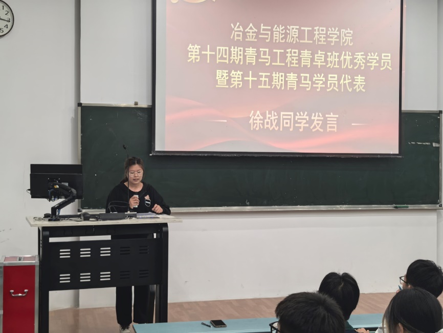 仪式在雄壮的共青团团歌《光荣啊,中国共青团》中拉开序幕。学院老师从四个方面展开致辞,一是读万卷书,读懂信仰与精神;二是行万里路,走出力量与坚持;三是名师指路,理解世界观和方法论;四是自己开路,敢于战斗与奉献。接着,主持人介绍了青马工程的对象、目的与规划,并请第十四期青马工程青卓班优秀学员暨第十五期青马学员代表徐战同学进行经验分享。