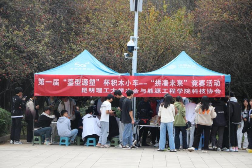 科技协会在博信广场举办第一届“鎏型源塑”杯积木小车“拼凑未来”竞赛活动,本次活动面向冶能学院全体本科生,共计500名同学参加此次活动。