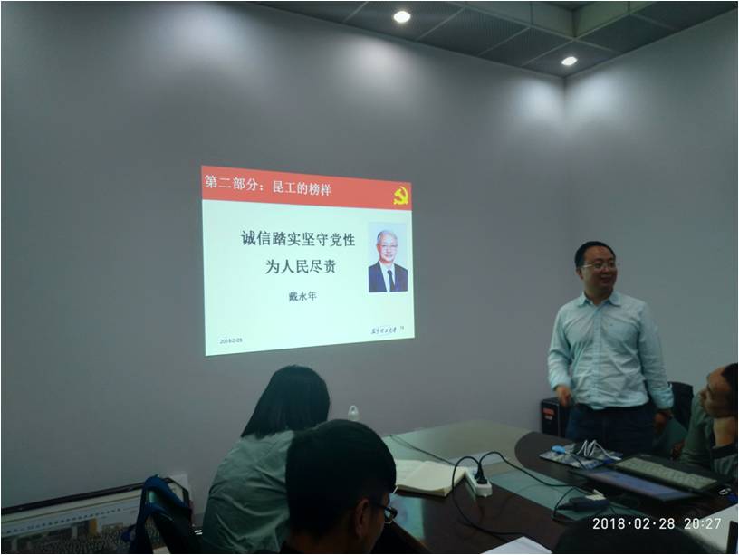 2018年2月28日,冶能学院党委委员徐宝强教授为冶能学生三支部全体党员上题为《深刻学习十九大精神、坚定政治立场、激发青春活力、做合格学生党员》的专题党课。