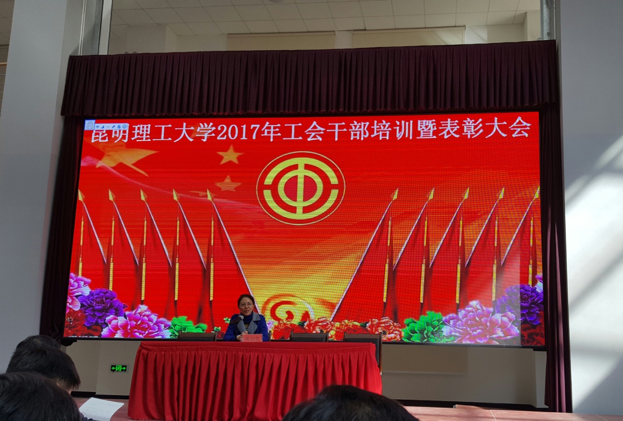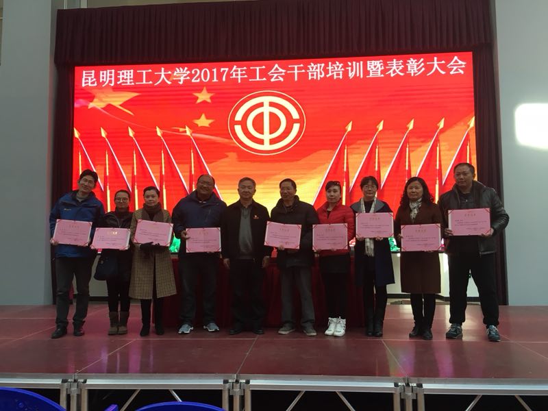 2017年12月26日下午校工会在工会教职工之家校工会召开了2017年工会干部培训暨表彰大会。首先请党校领导进行了十九大精神宣讲。并请云南省总工会财务部黄越红部长作工会财务管理专题培训。最后是表彰大会:1.表彰获云南省师德标兵称号个人。2. 表彰云南省教育卫生科研工会论文获奖人员。3. 表彰2017年校级师德先进个人。4.表彰2011-2016年工会工作先进个人及集体。5. 向获得第五批校级“模范职工小家”的基层工会授牌。
