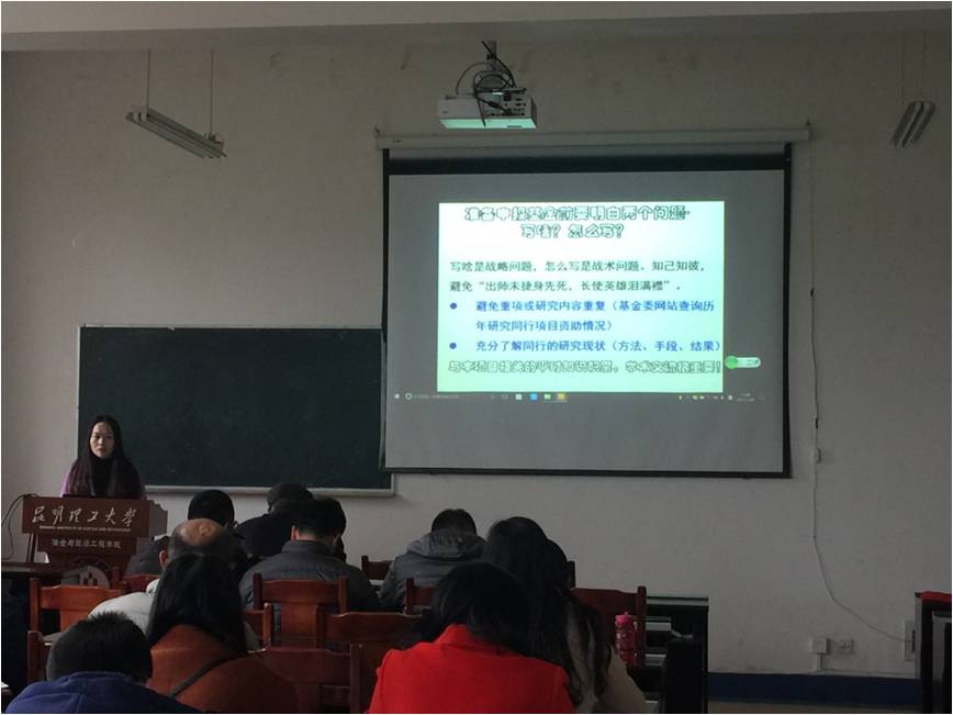 2017年12月8日下午,在h动画 407教室,由主管科研工作的谢克强副院长主持召开了h动画 2018年国家基金项目申报经验交流与动员会。学院特邀科技处吴建德副处长参会。吴处长从政策层面对学校、冶能学院近几年来的申报情况做了对比分析,指出获资助项目的质量有了明显的提升,鼓励大家尽可能多申报面上项目,并预祝冶能学院的2018年国家基金申报工作顺利完成。同时,学院邀请了曾云、李存兄、梁风三位老师分别从评审专家、申请人的角度做了精彩的经验交流报告,获得参会教师的一致好评。