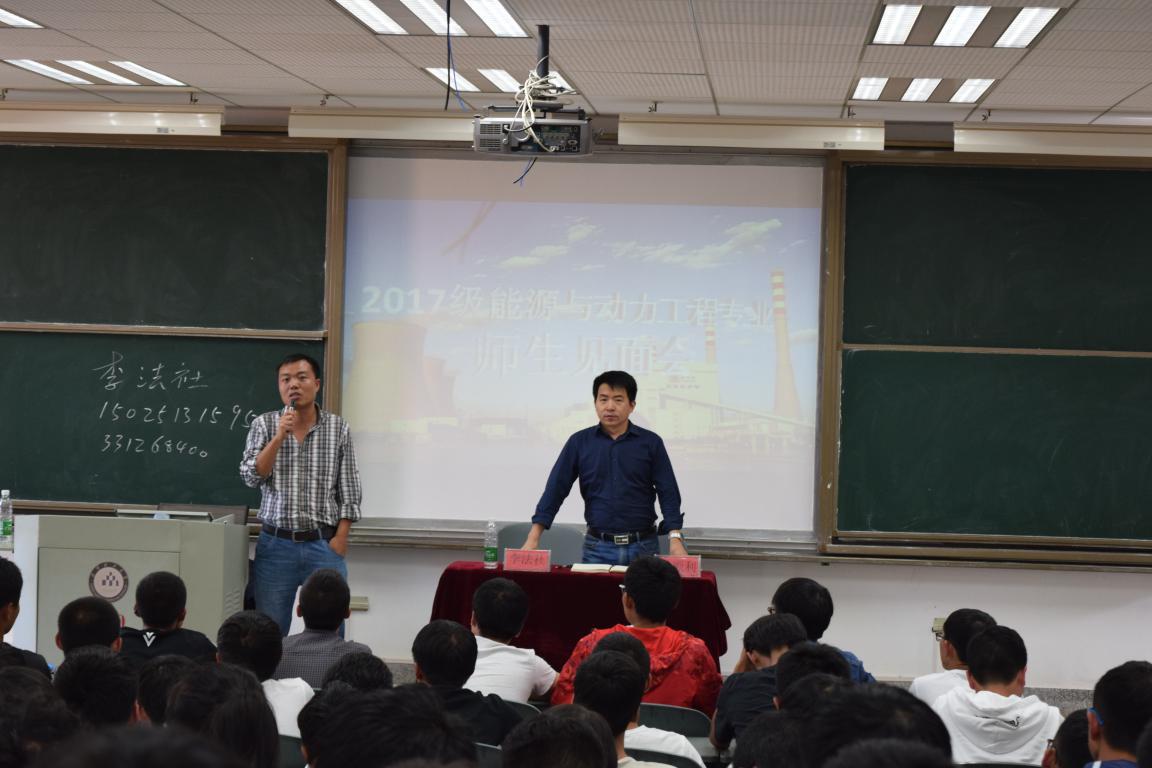 在多媒体420教室顺利开展能动专业师生见面会。本次见面会有幸邀请到能动专业系主任李法社老师,系副主任吕顺利老师到会,能动专业17级所有新生参加本次见面会。